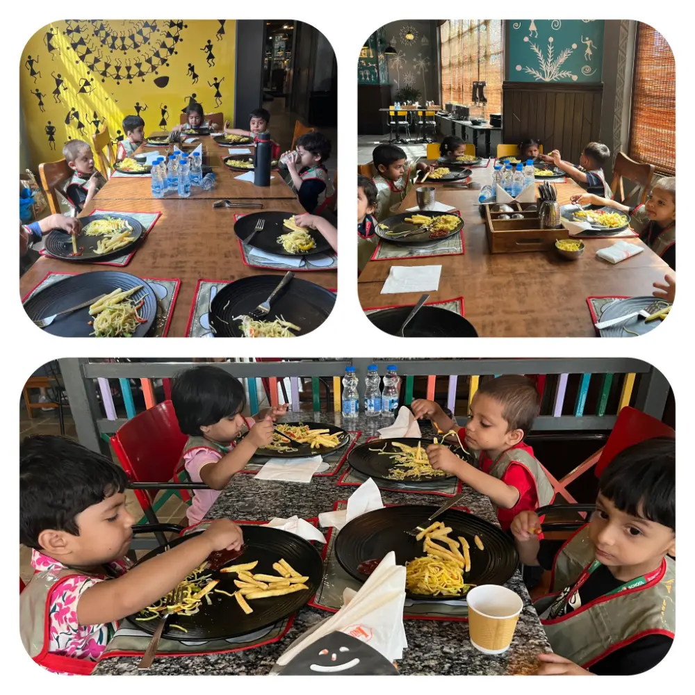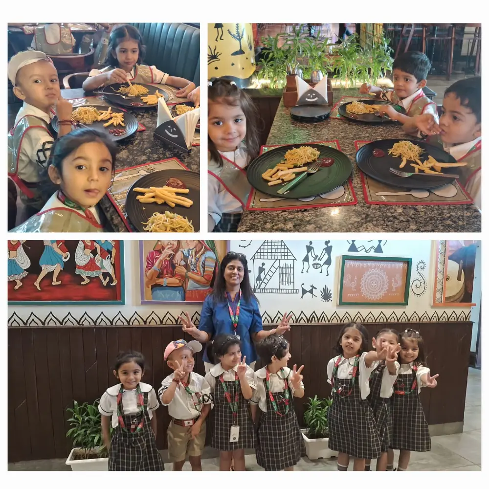Set against the calm and green surroundings of Panchgaon, this excursion helped our children connect with their peers, build confidence, and understand the importance of using magic words, sharing, and respectful behaviour.The day was filled with laughter, wonder, and wide-eyed excitement. From enjoying their snacks to learning new skills, each child carried home more than just memories – they took home valuable lessons in social behaviour and confidence.