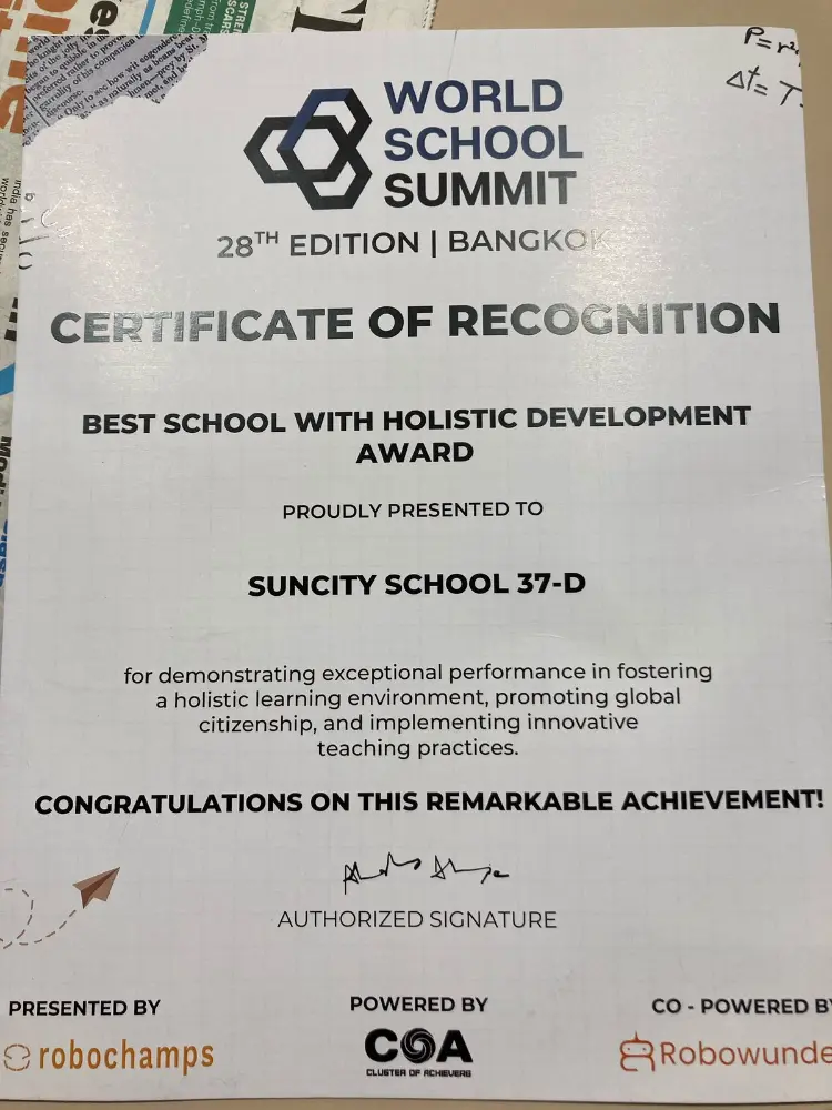 We thank the World School Summit for this prestigious recognition and look forward to continuing our journey of excellence in education.