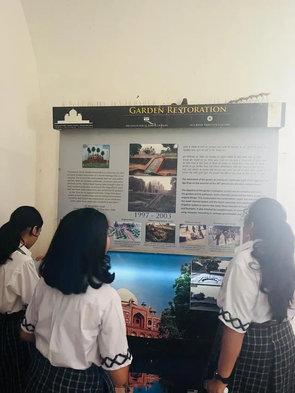 analysis. Students also analysed the drainage system of the monument. Through art and culture, students sketched architectural features and explored the symbolism of paradise gardens. Language and ICT tasks involved writing interviews, creating brochures, and using Hindi vocabulary with Persian roots. They also studied conservation efforts by ASI and the Aga Khan Trust, linking the restoration work to Sustainable Development Goal 11.