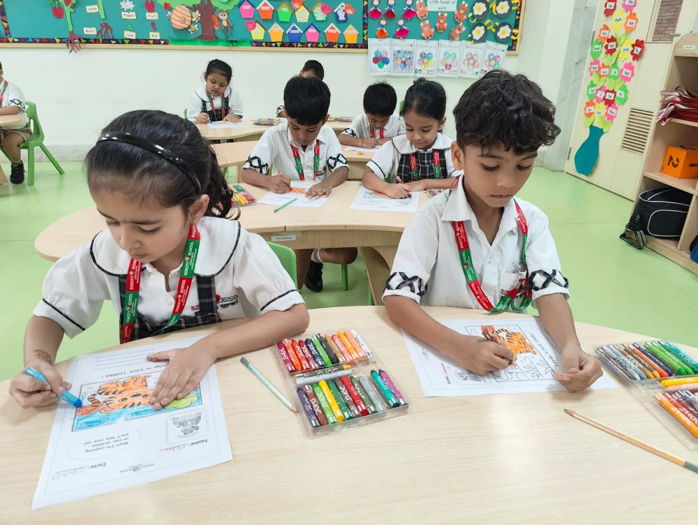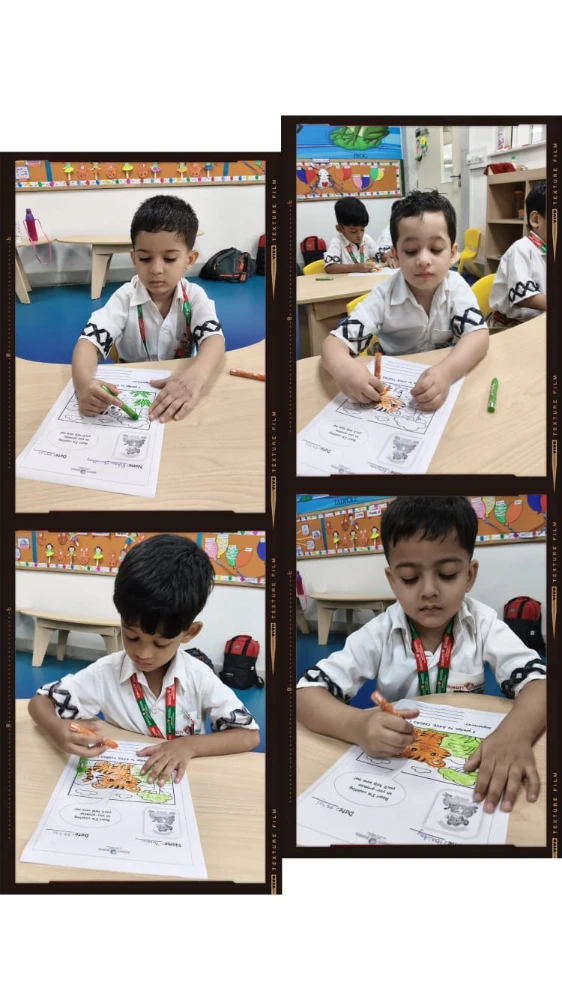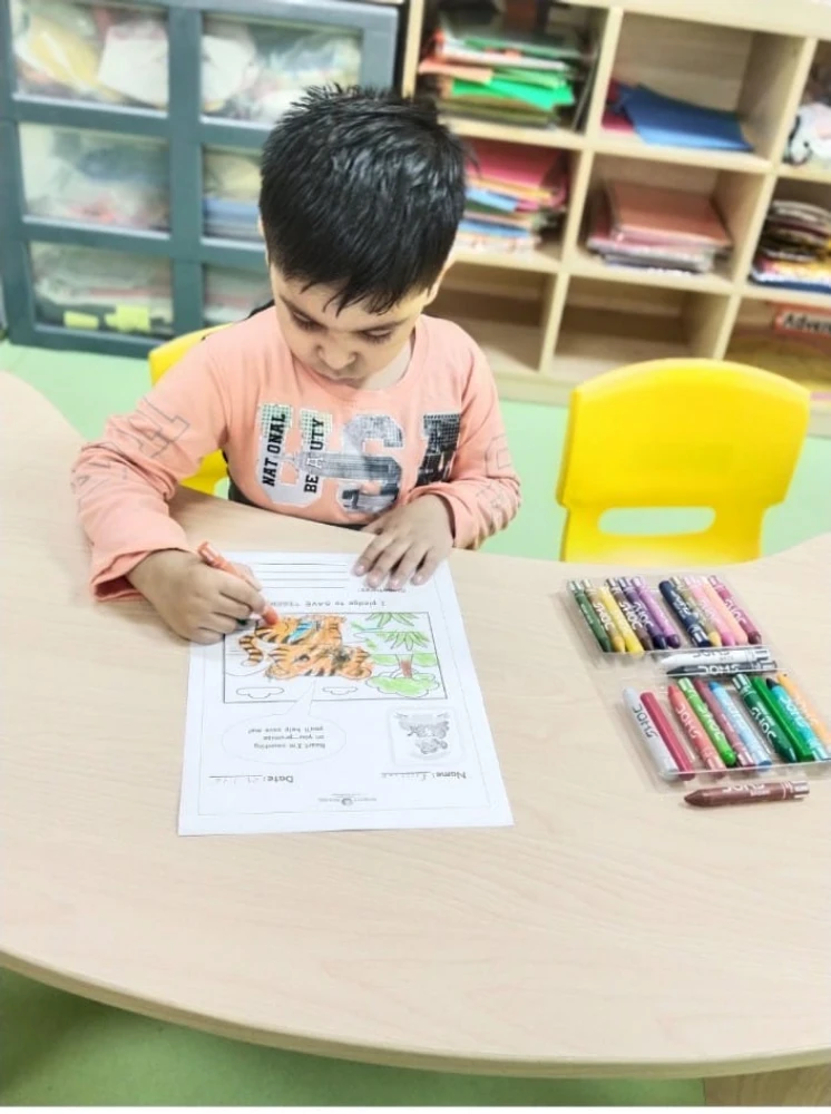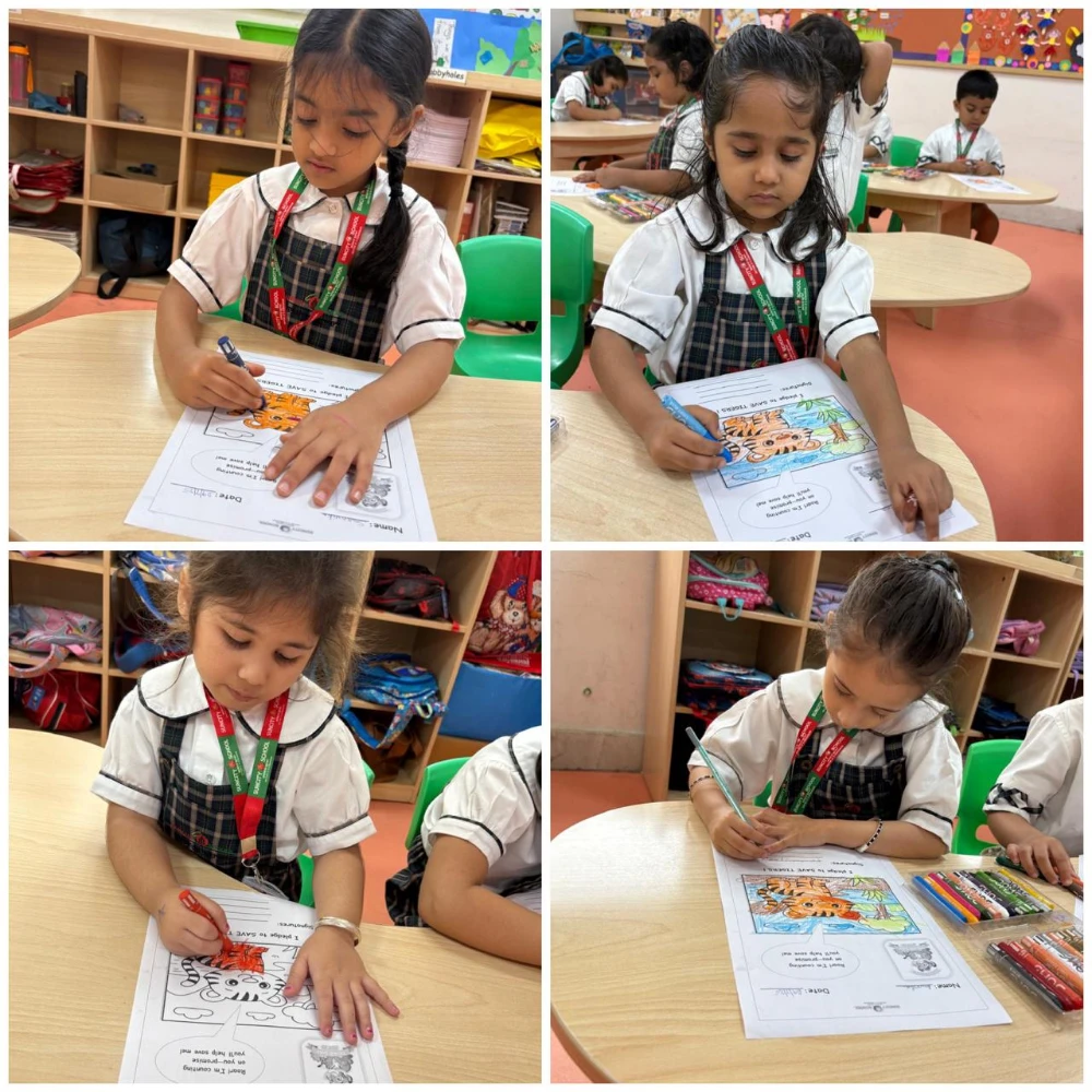 Each child coloured a worksheet featuring a tiger cub and proudly took a heartfelt pledge to save tigers — learning that even small voices can make a big difference when it comes to protecting our planet.