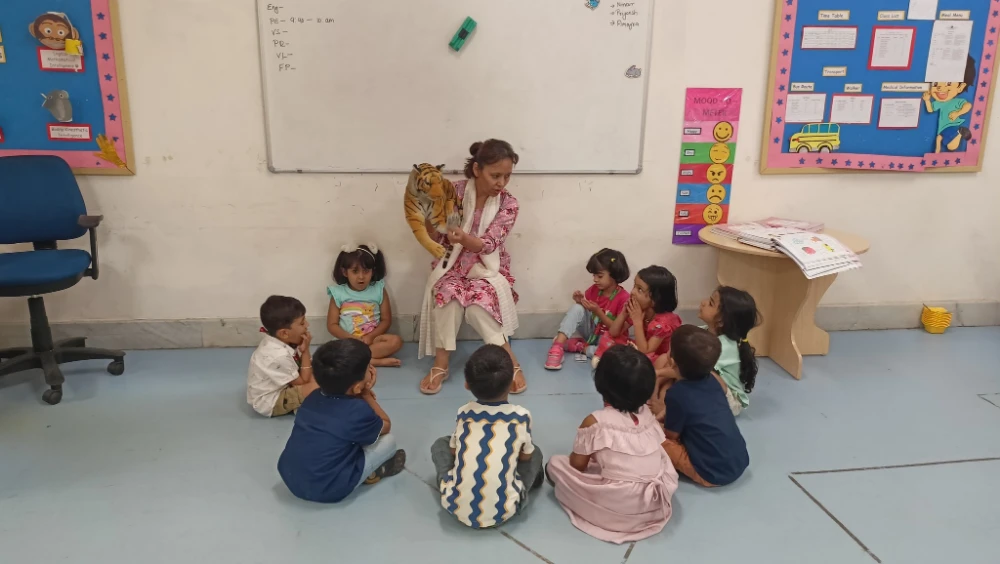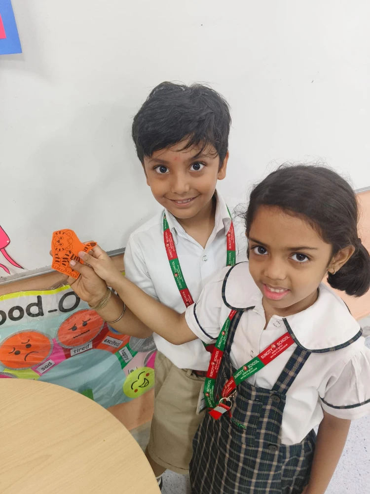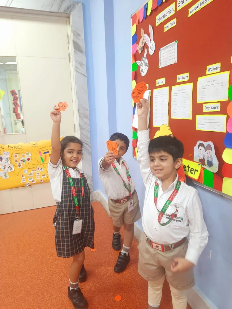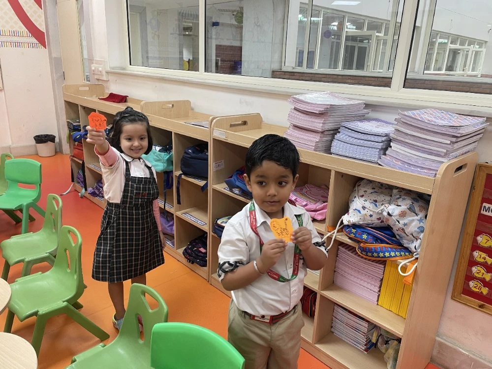 Turning the classroom into a mini jungle, children went on a Tiger Hide n Seek game using playful clues like “Look near where we read our books” and “Check under something orange.”