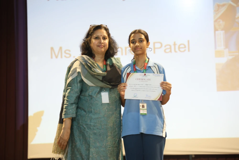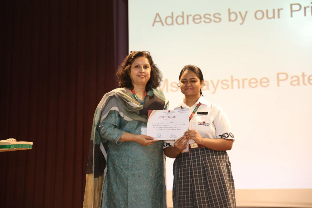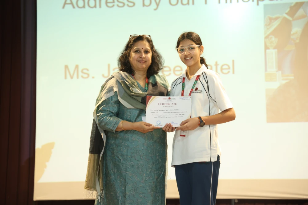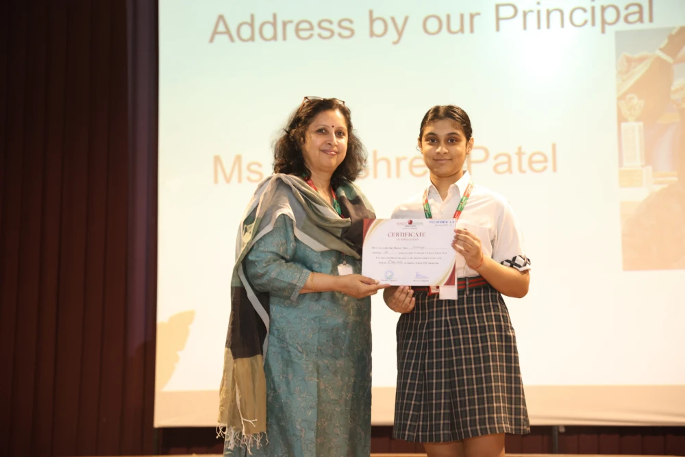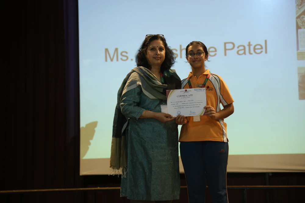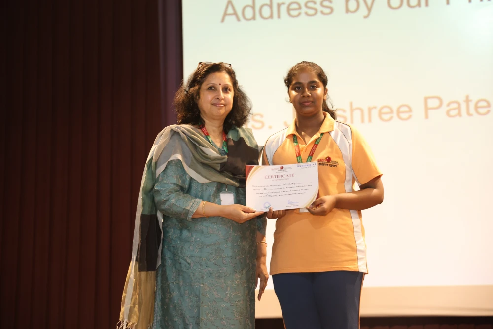 Another proud moment during the assembly was the felicitation of our talented students who participated and won laurels in Techtonik 4.0, an inter-school Tech event that celebrates creativity, innovation, and talent. Their achievements were applauded by all, and they were honoured on stage for bringing recognition to the school.