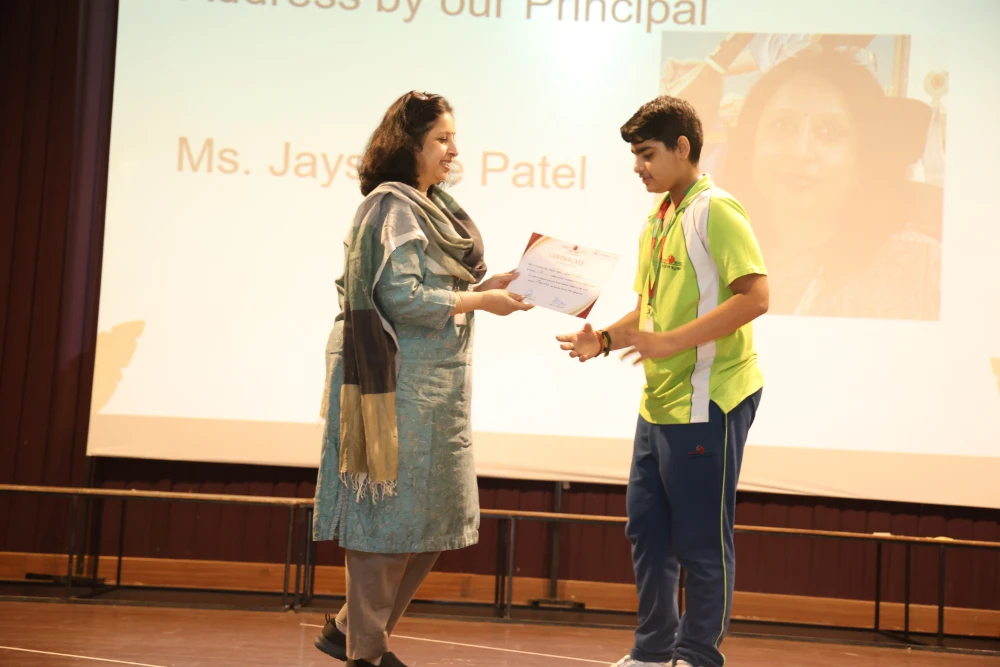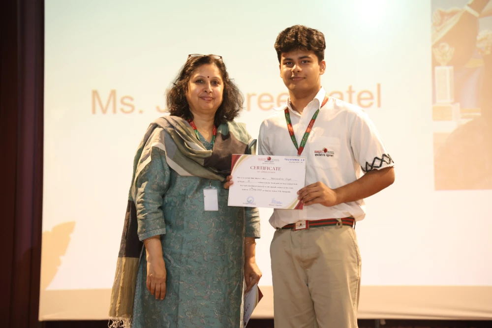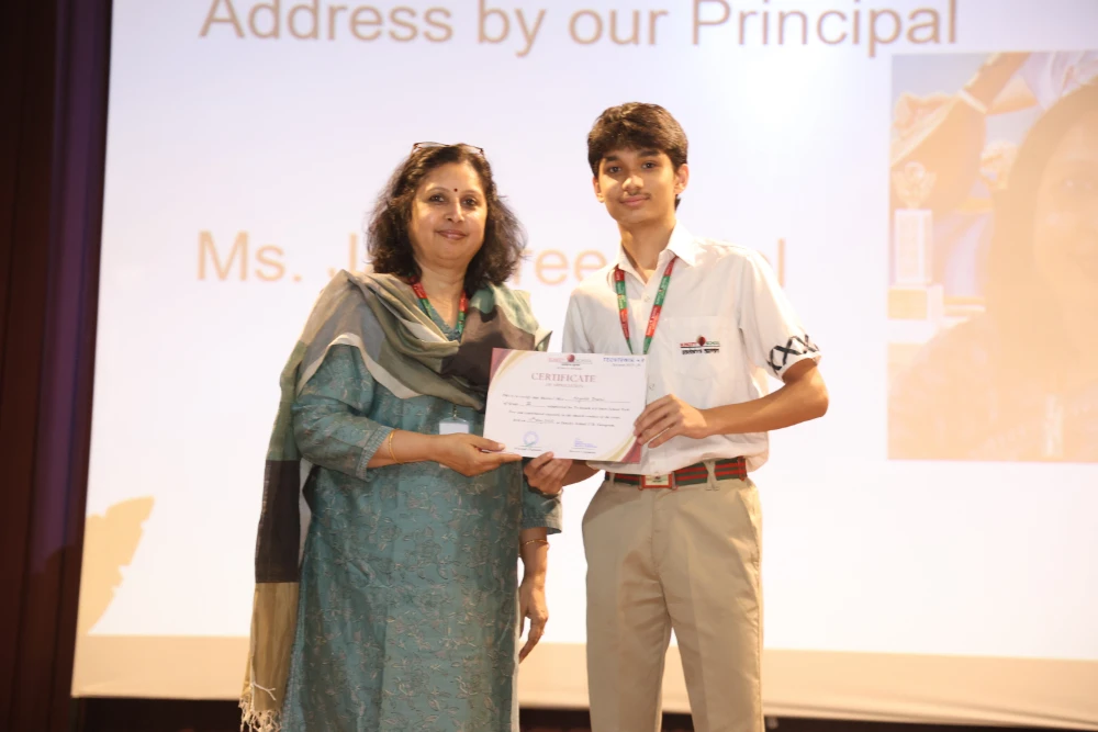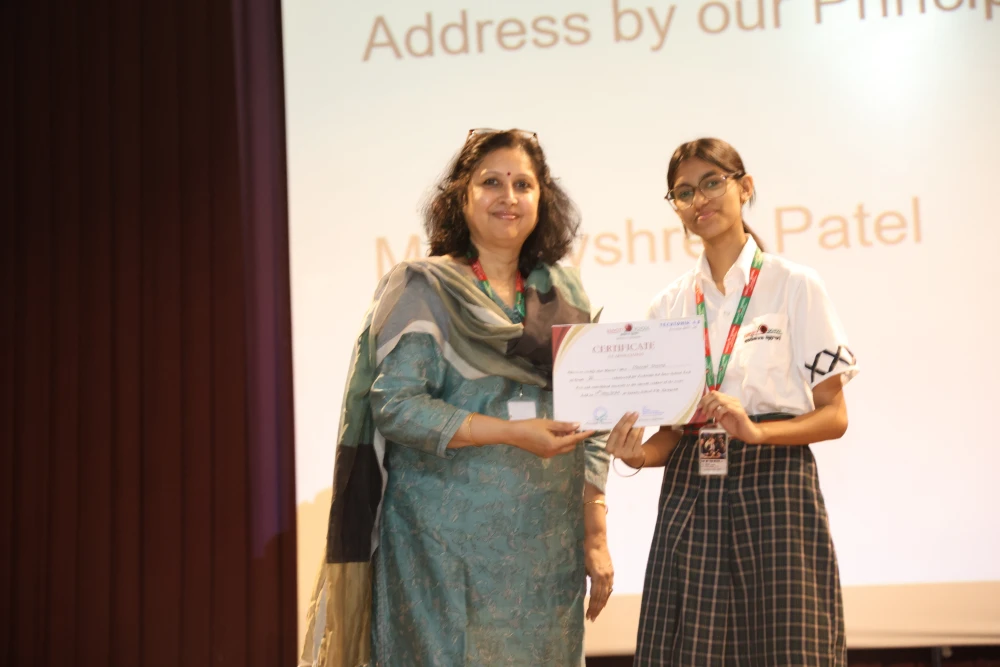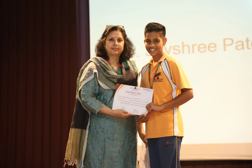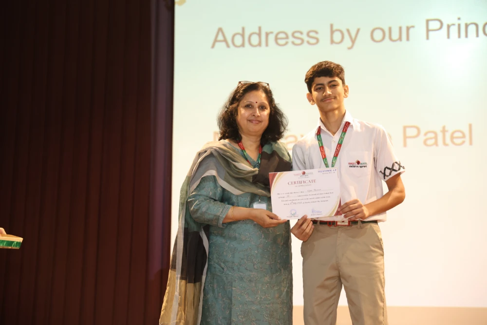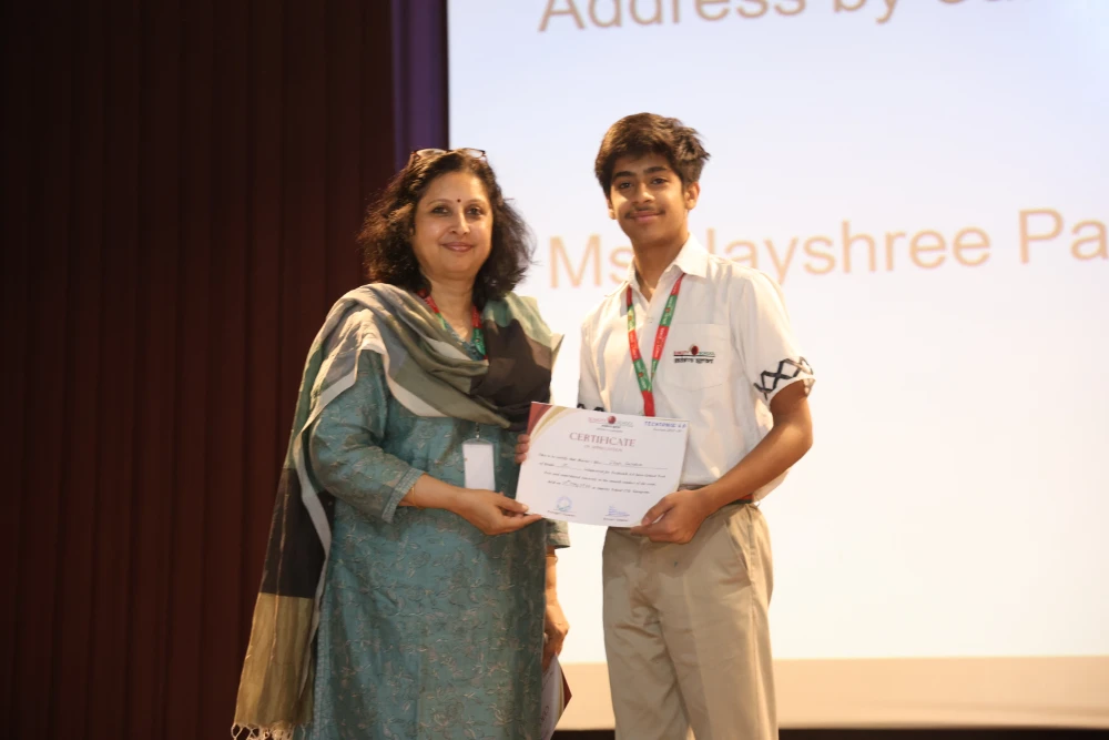 Another proud moment during the assembly was the felicitation of our talented students who participated and won laurels in Techtonik 4.0, an inter-school Tech event that celebrates creativity, innovation, and talent. Their achievements were applauded by all, and they were honoured on stage for bringing recognition to the school.