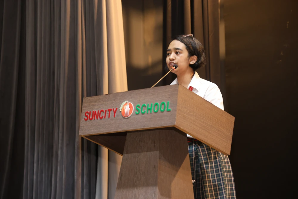 The morning of Ganesh Chaturthi at Suncity School, 37D, was filled with devotion, joy, and cultural vibrance as students of Grade VII led a special assembly in honor of Lord Ganesha—the remover of obstacles and the giver of wisdom.