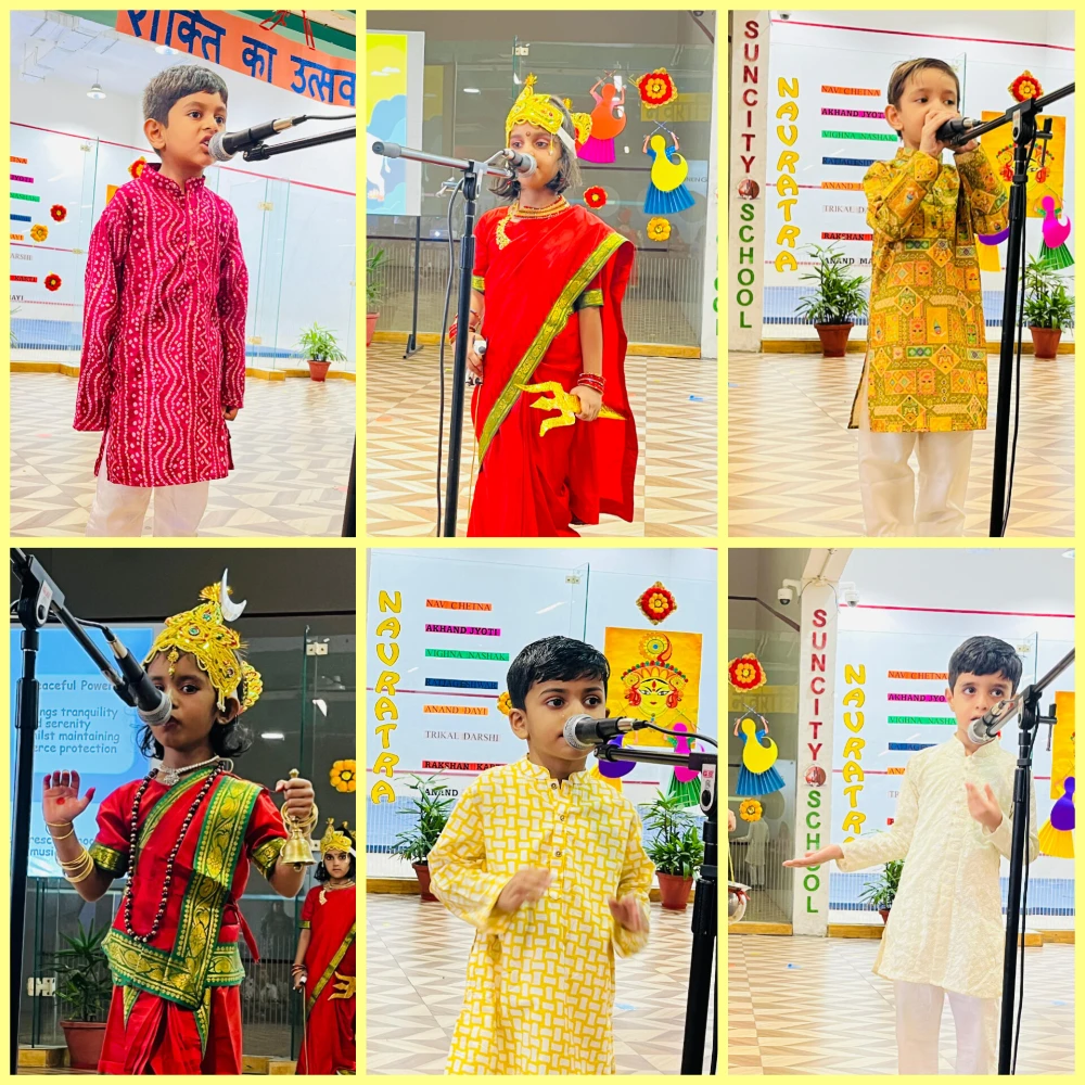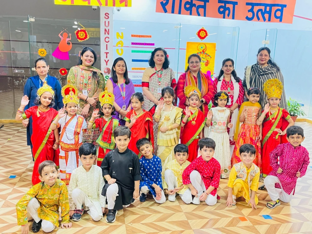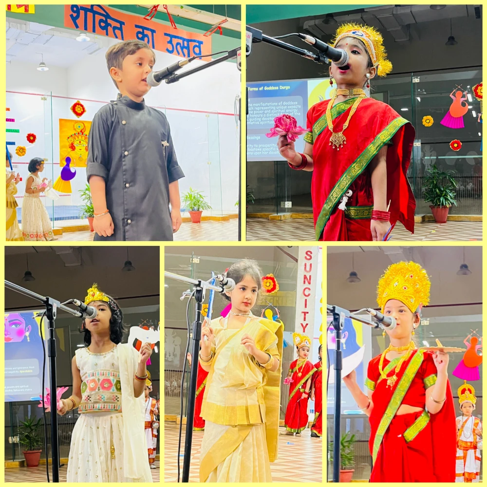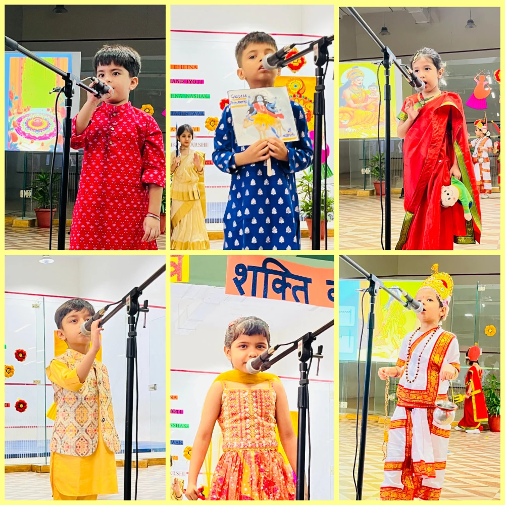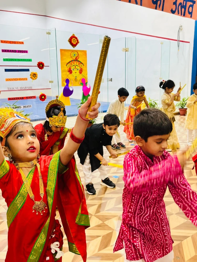 A Colourful Celebration of Tradition, Devotion & Women's Power, the enthusiastic learners of EYP 3D brought the spirit of Navratri to life through their vibrant assembly, “Shakti Ka Utsav.” With soulful prayers, inspiring presentations, and joyful dances, the children beautifully conveyed the significance of this festival, reminding everyone of the strength, purity, and devotion symbolised by Maa Durga.