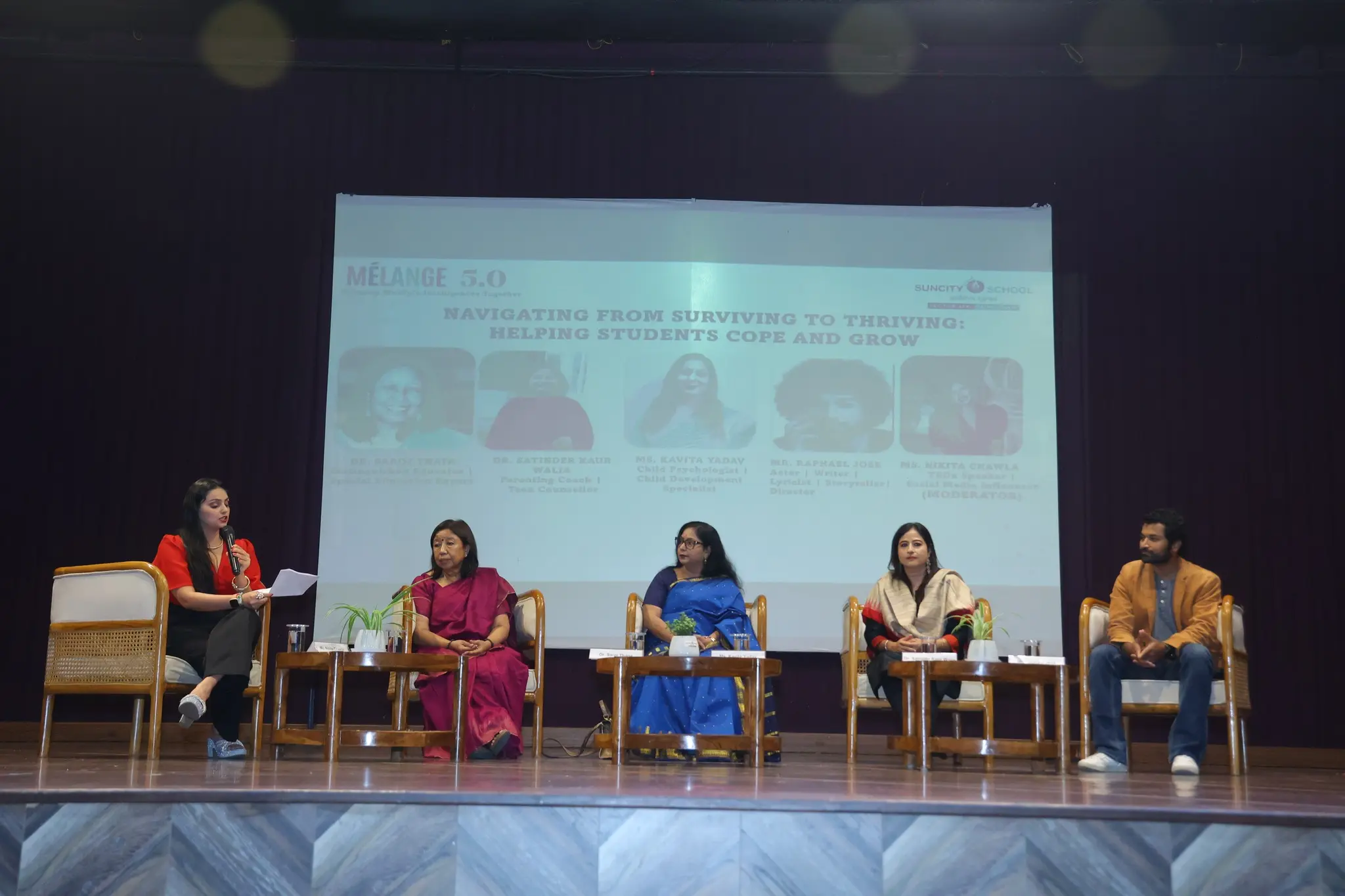 The closing ceremony made the purpose of the day unmistakably clear. The panel discussion — “Navigating from Surviving to Thriving- helping students cope and grow” — offered grounded, compassionate insights into belonging, psychological safety, emotional awareness and the importance of giving children space to speak their truth. Our panelist Dr. Saroj Thapa, an expert in inclusive education, spoke of belonging as the foundation of any thriving school. Ms. Kavita Yadav a psychotherapist reminded the room that psychological safety is not an idea, but a practice, one that allows a child to stumble without shame. Dr. Satinder Kaur Walia a child psychologist urged adults to notice the quiet shifts in behaviour that often signal distress before words do and actor-director Mr. Raphael Jose spoke about the courage it takes for young people to name their feelings without fear of being misunderstood. The session was ably hosted by our moderator Ms Nikita Chawla, a journalist and a TEDx speaker.